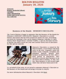 In accordance with the requirements of the CT DEEP General Permit for the Discharge of Stormwater from Small Municipal Separate Storm Sewer Systems, residents of the Town of Bolton are hereby informed that a draft pdf of the 2025 MS4 Stormwater Annual Report, which summarizes municipal stormwater compliance activities conducted within the Town of Bolton during calendar year 2025, will be posted on…