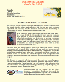 The Town of Bolton is proud to recognize KSB Electric as March’s Business of the Month. Locally owned and operated, KSB Electric has built a strong reputation for providing reliable electrical services while maintaining a commitment to quality workmanship and customer care.After spending several years working in the electrical trade, the owner of KSB Electric decided to start his own business…